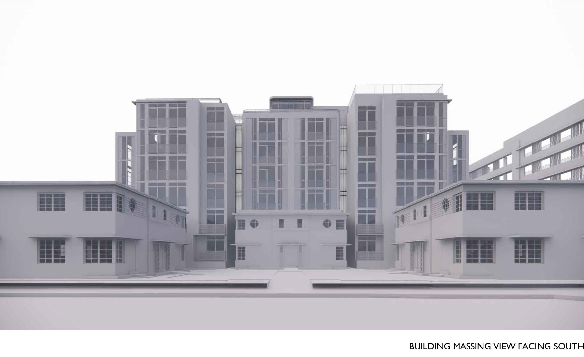 However, as currently proposed we believe that the massing is overwhelming the context of the existing Regent Hotel. The resulting proposal would have an approximately 3-story addition on top of a two-story Art Deco hotel. The massing as currently proposed appears to overwhelm the existing structure. Therefore, we concur with the Staff Report and urge a continuance in order for the applicant to develop a more contextual massing program for the proposed addition.