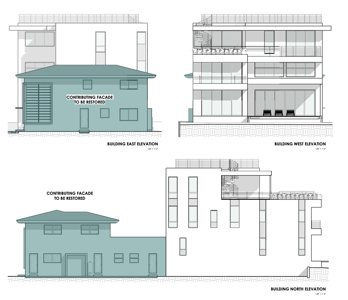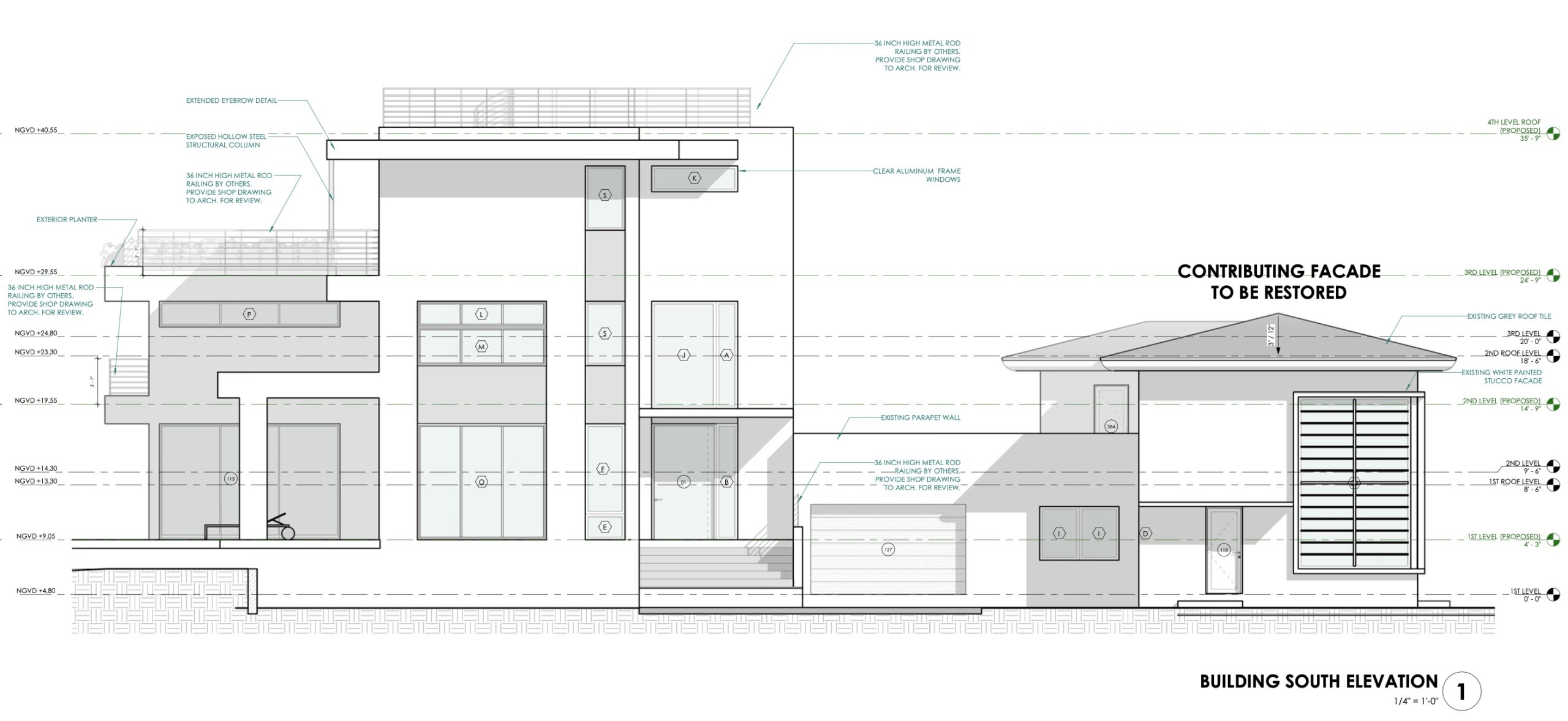 - The proposed 16’-0” floor to floor heights be reduced to no less than 12’ flor to floor, which is consistent with the maximum floor to floor heights for roof top additions in all historic districts.