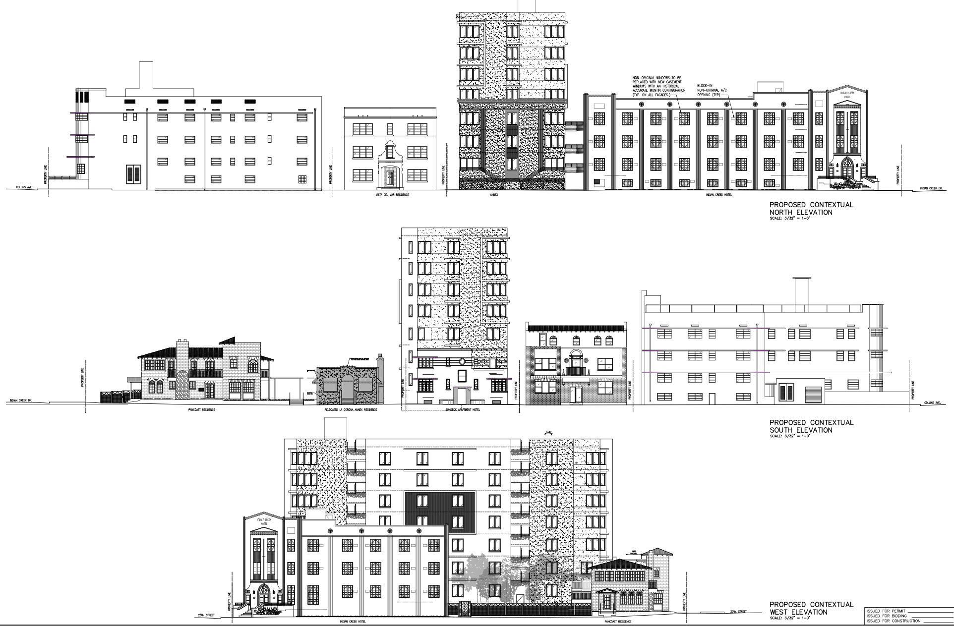 An application has been filed requesting modifications to a previously issued Certificate of Appropriateness for the partial demolition, renovation and restoration of all buildings on the site and the construction of an attached addition as part of a new hotel development, including one or more waivers and variances to reduce the required setbacks, reduce the required open space and reduce the minimum hotel unit size. Specifically, the applicant is requesting design modifications to the previously approved project and modifications to the previously approved variances for the required open space and minimum hotel unit size requirements.
