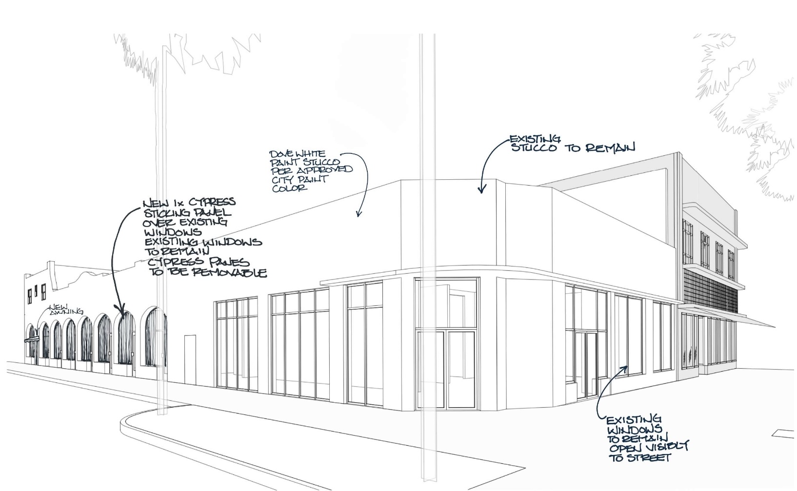 An application has been filed requesting a Preliminary Evaluation for exterior façade modifications.