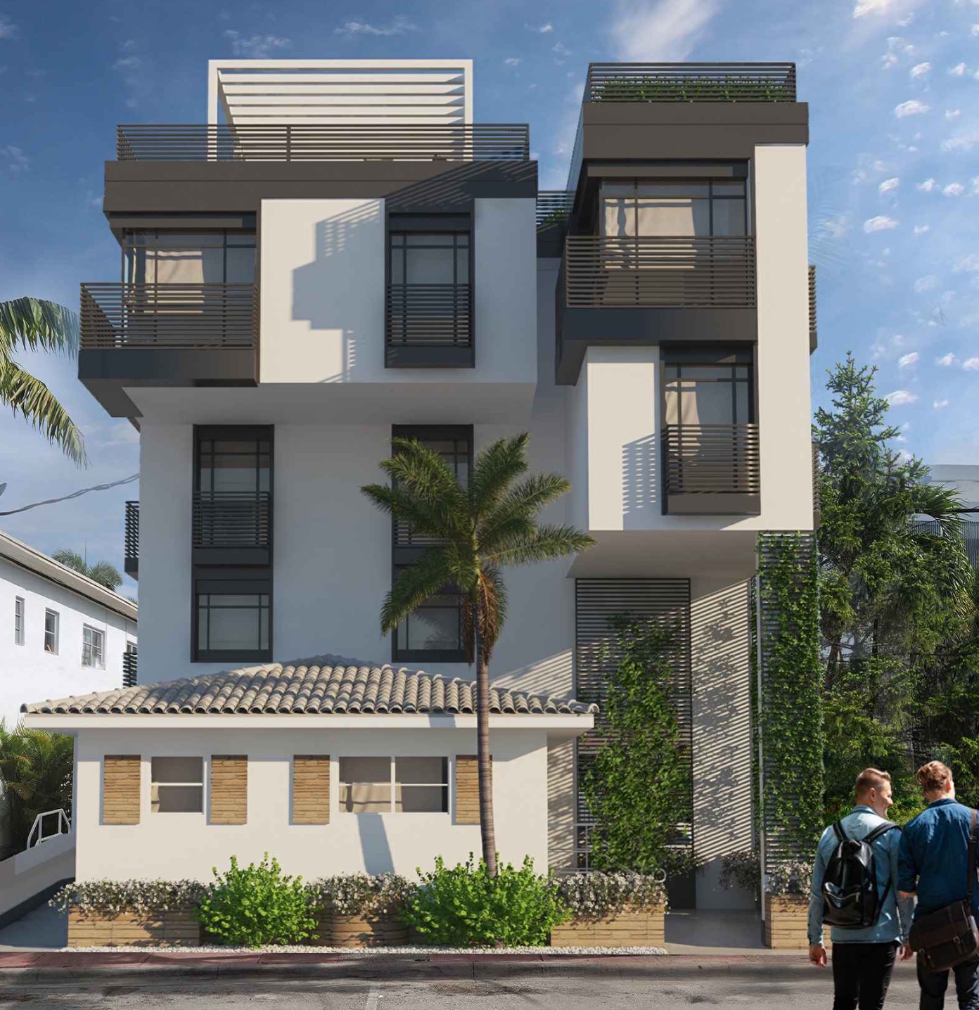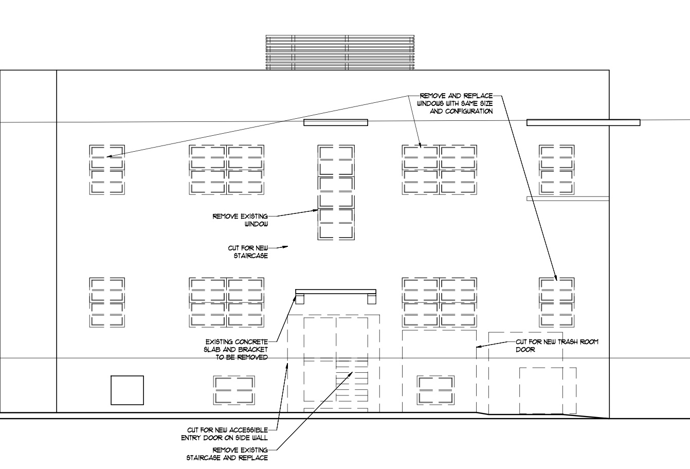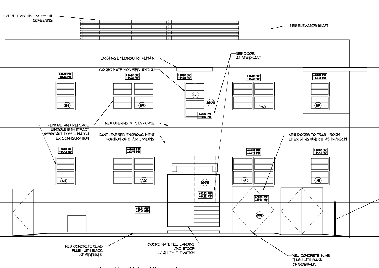 An application has been filed requesting a Certificate of Appropriateness for the substantial demolition, renovation and restoration of the existing building on the site, the construction of an attached multi-family residential addition and a variance from the setback requirements.