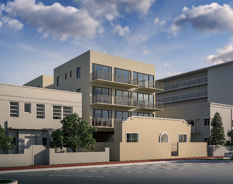 An application has been filed requesting a Certificate of Appropriateness for the substantial demolition of the existing building and the construction of a new multi-family residential addition.