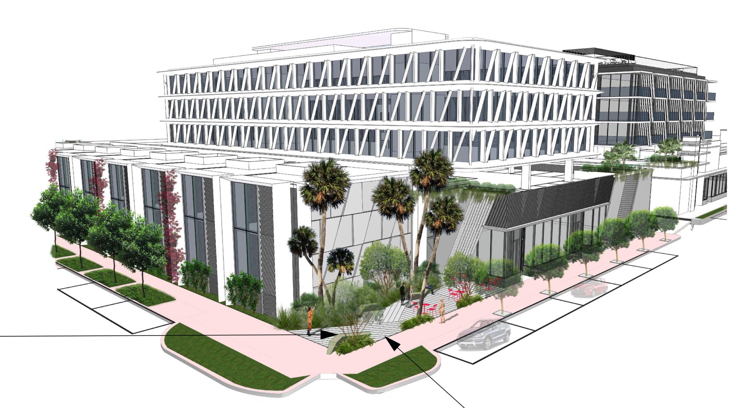 An application has been filed requesting a Certificate of Appropriateness for the construction of a mixed-use building on an existing surface parking lot and a variance to reduce the number of required loading spaces.