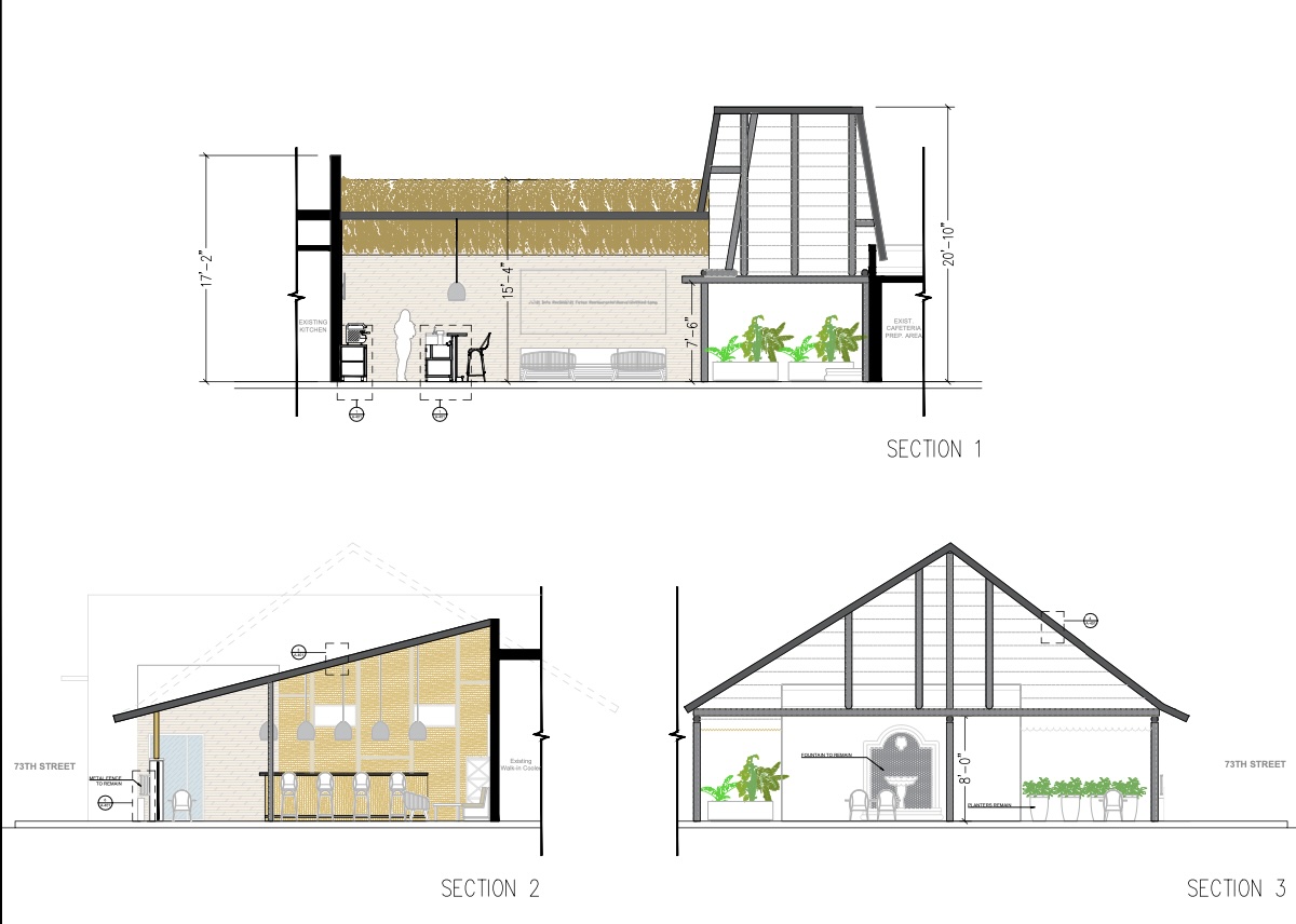 An application has been filed requesting a Certificate of Appropriateness for exterior modifications including but limited to the introduction of a new shade structure, an outdoor bar counter and a mural, and a variance to exceed the hours of operation for an outdoor bar counter.