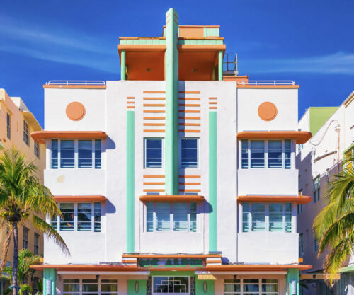 Many of the buildings that make up the Art Deco District match radios in their sleek style, adorned flair, and signature aerodynamic, nautical streamline details.