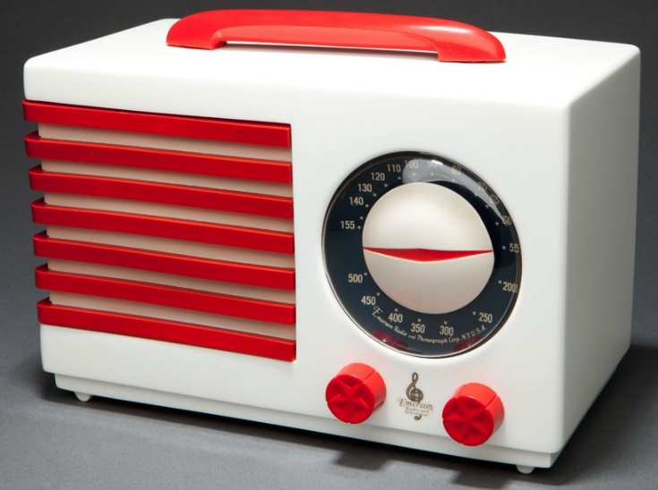 Physically, they upgraded from wooden, ornate family stations to sleeker, streamlined compact devices. Some of the most popular materials for Art Deco radios – which were mass-produced – included wood, synthetic plastics, resins, polymers, and acrylics.