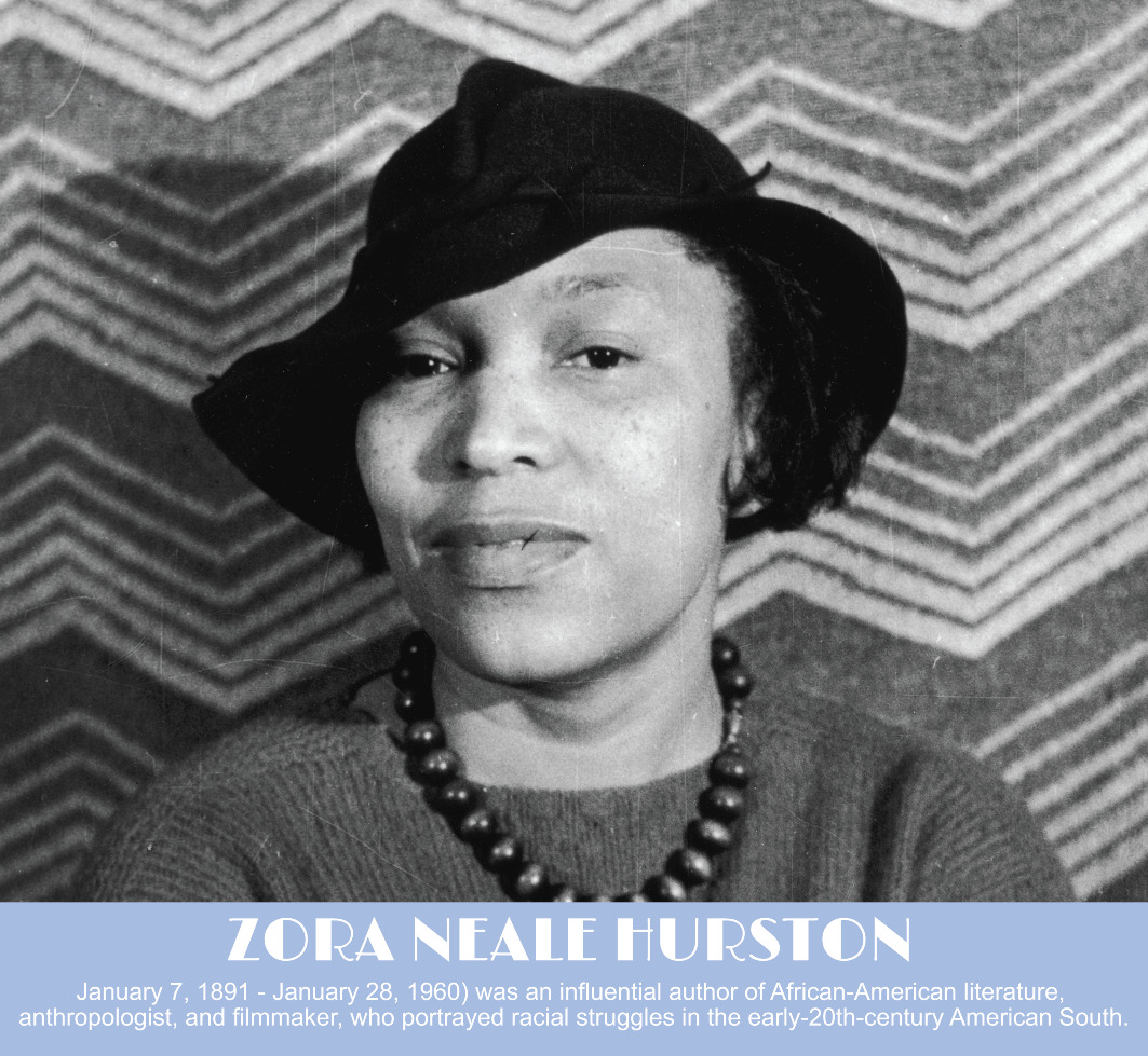 Zora Neale Hurston (Jan 7, 1891 – Jan 28, 1960), was an influential author of African-American literature, anthropologist, and filmmaker, who portrayed racial struggles in the early 20th-century American South.