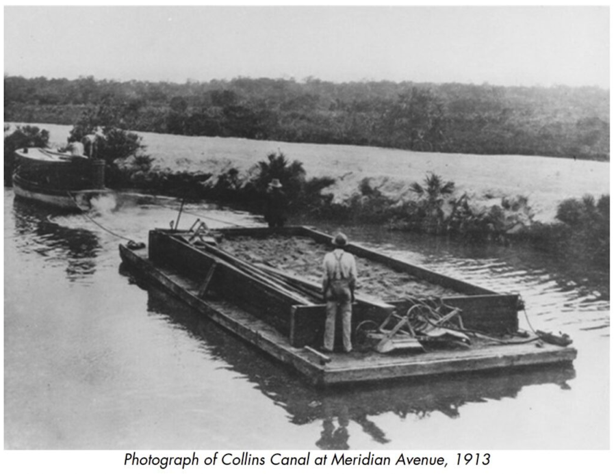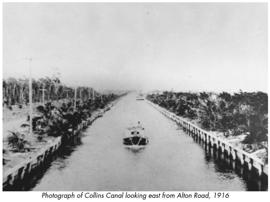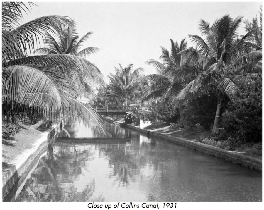 The canal has a fascinating history: It is associated with Miami Beach’s initial developmental period as agricultural farmland. The construction of Collins Canal was part of John S. Collins (1837-1928) agricultural project that began over a century ago, and it has stood the test of time! The original alignment of the Collins Canal has been maintained since its construction in 1912.